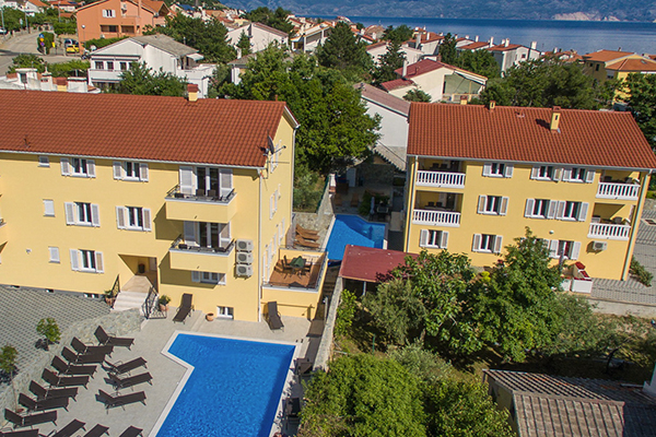 Byggår 2016, fördelat på 2 våningar. Totalt 18 lägenheter fördelade på 2 villor bredvid varandra. Pool. Gratis Wi-Fi. Sängkläder och handdukar samt avresestädning ingår. Byte av handdukar sker inte under veckan. I trädgården finns en gemensam grill som kan nyttjas av gästerna. Gratis parkering. Ej reception.