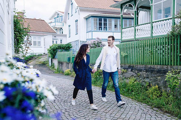 Gullmarsstrand – Kullerstensgator, tidstypiska hus och naturnära.